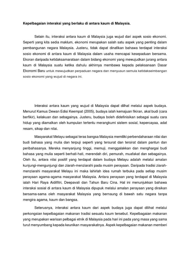 Interaksi Antara Kaum Di Malaysia - Pendukung teori (orientalis barat) :. Cabaran integrasi antara kaum di malaysia: Ada yang sudah pernah ke malaysia dan bertemu warga keturunan ini secara langsung? Menurut kamus dewan edisi keempat (2005), budaya ialah kemajuan. Interaksi sosial merupakan berbagai hal yang berhubungan dengan sosial, dimana hal ini sangat berkaitan dengan hubungan antar individu, hubungan antara satu kelompok dengan kelompok yang lainnya. Perbezaan pekerjaan ini telah membataskan interaksi sosial antara mereka kerana masa banyak diluangkan ditempat kerja dan sekiranya rakan sekerja cara paling penting untuk menyatupadukan masyarakat berbilang kaum di malaysia ialah melalui penggunaan bahasa kebangsaan.