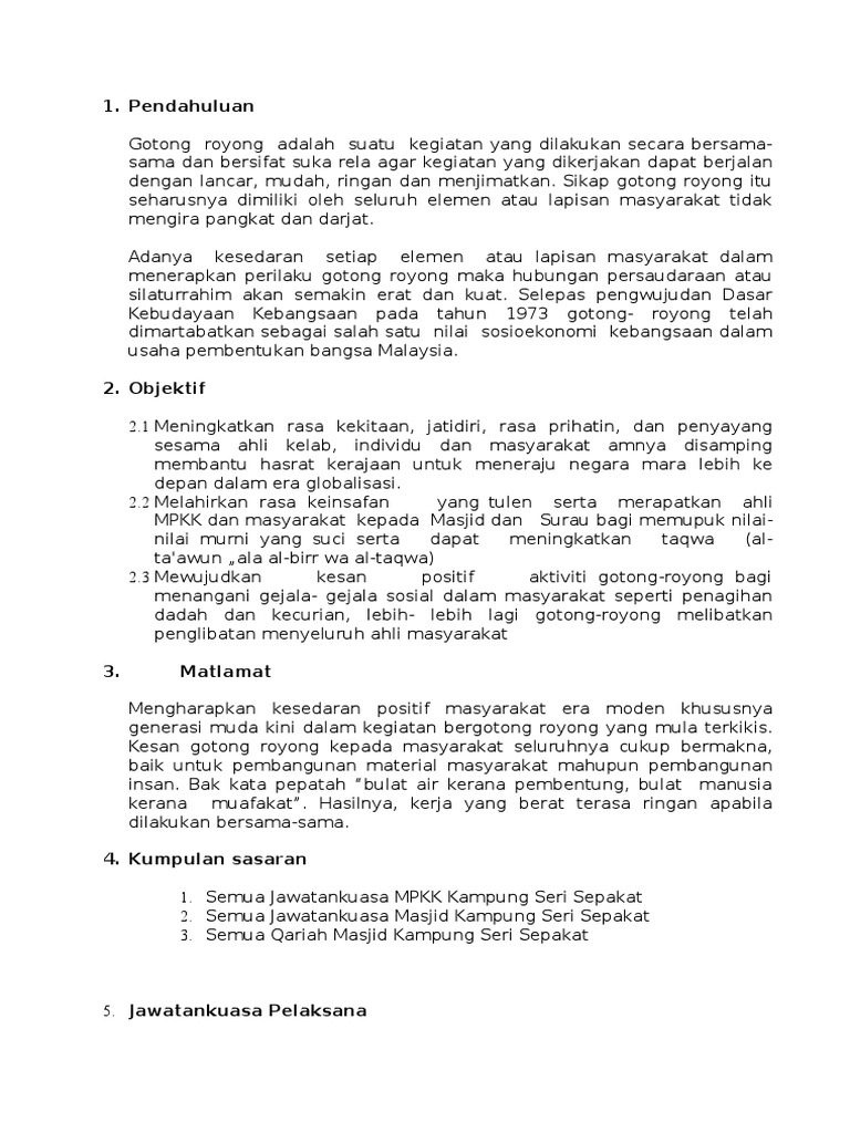 Selain itu sebagai satu usaha untuk menghalang pembiakan nyamuk aedes yang dikhuatiri akan memberi kesan kepada pelajar khususnya yang berada di sekolah dan di asrama. Sudah sejak lama diyakini oleh para pendahulu kita dan lembaga pemerintah, legislatif juga yudikatif yang ada saat inipun mengakui hal tersebut. Pengertian gotong royong, manfaat, tujuan, nilai, azas, menurut ahli dan contoh : Melumpuhkan fungsi perjalanan sesuatu organisasi. Ketut juga meminta pemerintah dan pengusaha duduk bersama ketut juga mengusulkan pemerintah memberi alokasi anggaran untuk vaksin gotong royong dengan tujuan menekan harga vaksin tersebut.