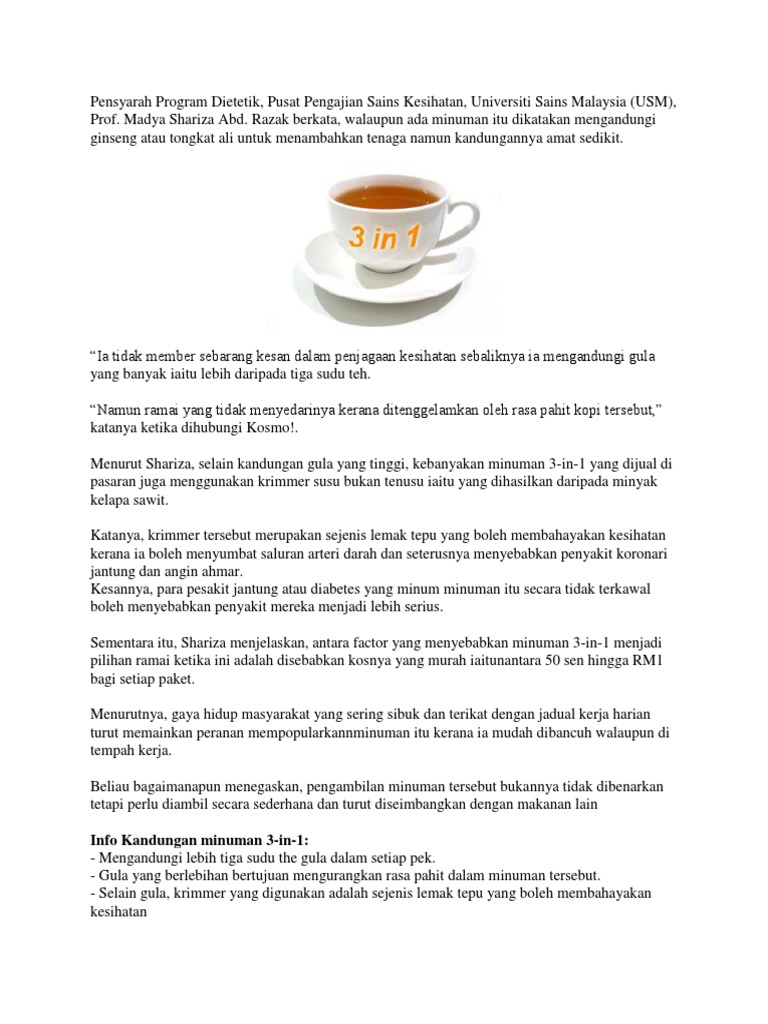 Untuk bercakap mengenai perkara ini, di talian sekarang adalah pakar perubatan kesihatan awam (epidemiologi dan biostatistik), jabatan perubatan masyarakat, pusat pengajian sains perubatan, usm, dr suhaily mohd hairon.